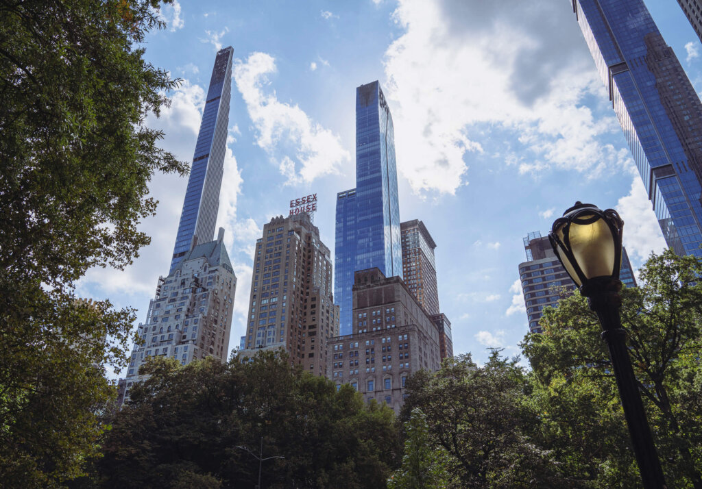 Das Essex House in New York City ist ein ikonisches Art-déco-Gebäude am Südrand des Central Parks, dessen markante Leuchtschrift seit 1931 zur Skyline gehört. Es wurde mitten in der Weltwirtschaftskrise eröffnet und entwickelte sich schnell zu einer der exklusivsten Adressen Manhattans. Heute wird es als JW Marriott Essex House betrieben und verbindet historischen Glamour mit modernem Komfort. Direkt vor der Tür liegt der Central Park, eine 3,41 km² große, künstlich angelegte Parkanlage, entworfen von Frederick Law Olmsted und Calvert Vaux. Er bietet Wiesen, Seen, Spazierwege und Sehenswürdigkeiten wie das Bethesda Terrace, den Central Park Zoo und die Bow Bridge. Von vielen Zimmern des Hotels genießen Gäste einen spektakulären Blick auf dieses grüne Herz Manhattans – eine Oase zwischen den Wolkenkratzern, die zu jeder Jahreszeit ein einzigartiges Panorama bietet. Diese Lage macht das Essex House zu einem der unverwechselbarsten Wahrzeichen New Yorks.